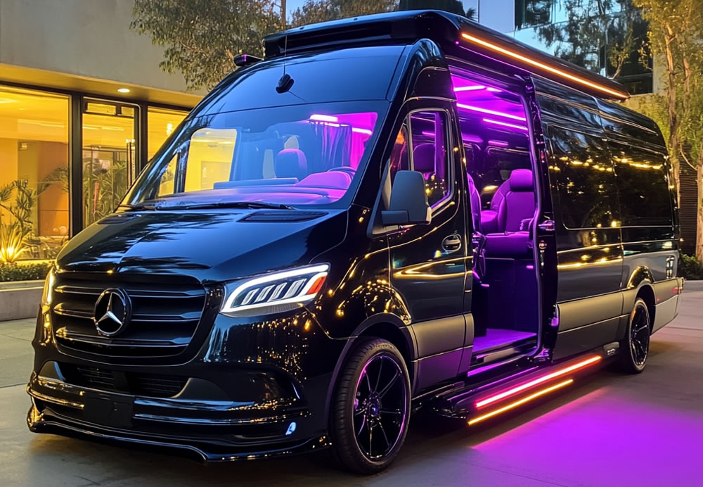 Look for vans with premium features like leather seating, climate control zones, and enhanced lighting systems. These additions make a big difference for evening events.